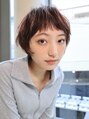 ぱっつんバング&ハイレイヤーカットが個性的で大人可愛い小顔ウルフマッシュショート。バーガンディやチェリーレッド、ミルクティーピンクの暖色系カラーで大人ガーリーにしたり、ダークアッシュやオリーブグレージュのヌーディーカラーも透明感が出て◎