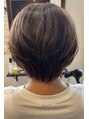 前下がりボブのクールな雰囲気に合わせたグレージュハイライトデザインのスタイルです!スライドカットとセニングの組み合わせで作った柔らかい質感がカラーとマッチしてオイルでスタイリングするだけでおしゃれに決まります!