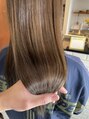 Aujuaトリートメントで艶髪に!カラーはオリーブ系で赤味を感じないようにくすませました。髪質に合わせた調合でダメージレスを徹底しております!