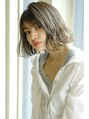アゴラインに切ったボブを外ハネにニュアンスに巻いたスタイル。細かいカットで質感をしっかり作るのがポイント!カラーはシアーグレージュで透明感のある外国人風の質感に!