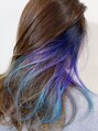 インナーカラーのグラデーションを強めたスタイルです。ネイビーからバイオレット、スカイブルーに変化していく絵を描いたようなカラーリング。気に入ったスタイルは【ブックマーク】してイメージの参考にしてみてください♪