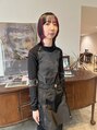 がっつり入ったレイヤーとブリーチの伸びた根本を生かしてライン感のあるローライトを入れてデザインをきかしたレッドカラー。チラッと見えるポイントカラーの黒と赤のバランスが◎