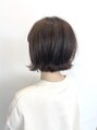 ショートボブ♪内巻きにも外ハネにも扱いやすいスタイルです♪カラーはベージュブラウンで柔らかさのあるお色に♪