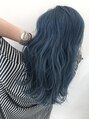 赤みや黄色みを抑えたオーシャンブルー◎ハイライトやブリーチを入れる位置や量はお客様一人一人に合わせたオリジナルデザインを♪ダークカラーで透明感を楽しむオフィスでも浮かないカラーの出来上がり◎