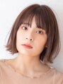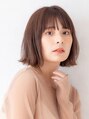 シンプルな外ハネボブスタイルです。全体をコンパクトに見せ小顔に見えるシルエットにしています。ベースを軽く巻いて巻きすぎない大人めスタイル。前髪はカーラーを使いゆるく均一に巻いています。バーム系を使いまとまりとセミウェットな質感を作っています
