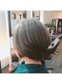 頭のバランスがキレイに見えるように首筋ラインをくびれさせてトップにボリュームが見えるように作っています。カラーはダメージレスのブリーチの後赤味を無くしたアッシュベージュをのせてええ感じに!