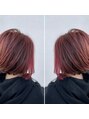 カラーはインナーと最近トップの白髪が気になり始めたとの事で表面に細いハイライトを入れて白髪ぼかし。シャンプー後カラーをもう一度、インナーと表面の細いハイライトにオリジナルピンクんのせて出来上がり^ ^