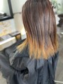 全体のカラーを褪色の事を考えて濃いめにしています。あと、グラデーション部分と以外の部分を色分けをしてオレンジ赤味をなくすよう作りました。カットはデザインを変えず重さと手触りを良くするの枝毛カットで手触り抜群に!喜んでもらえてええ感じ^ ^