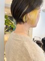 【気に入ったスタイルは、お気に入りに登録してカウンセリングの際にお使いください】弾サムショートに合わせたオシャレなイエローインナー。毛先パーマ/コテ巻き/前髪パーマ/ダブルカラー/ハイトーン/ハイライト