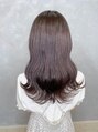 ベージュカラーを活かしてラベンダーを入れた、透明感溢れる艶やかなカラー◎太めのコテまたはストレートアイロンでざっくり波巻きして毛先を外ハネにするのがいまっぽい◎【久留米】