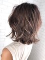 ベースのカラーは明るめのブランジュで、赤みをおさえて透明感のある印象に。ポイントでハイライトを入れて動きをプラス。写真のようにくびれを作るイメージで内、外の順でコテ巻きすると、より立体感が出てお洒落なボブスタイルに☆【久留米】