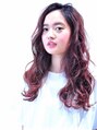 ベースをハイライトで明るく。上からカシスレッドをON。ベージュ系のカラーに少し飽きちゃったな…という方におすすめのグラデーションカラーです★波ウェーブパーマでニュアンスロングの完成!