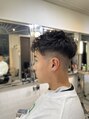 トップに長さを残しサイド、バックにFADEを入れ刈り上げた王道BARBERスタイル。トップに立ち上動きを出すパーマをあてるとスタイリングが楽になりますよ!当日予約可ブックマークするを押してカウンセリング時にお使いください!