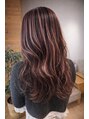 落ち着いたブラウンベースに、ほんのりピンクカラーのハイライトをプラス。細めに入れることで主張しすぎず、光に当たるとやわらかく色味が出るナチュラルな仕上がりです。ロングヘアに立体感とツヤ感をプラスしたい方におすすめ。