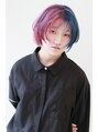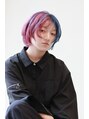 カットはボブレイヤーで顔周りに動きをつけています!カラーはブリーチを全体に2回、半分をピンク、半分をブルーのデザインカラーに仕上げています!