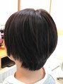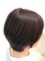 扱いやすい長さで、表面に長めの髪をかぶせてツヤ感を。襟足はタイトにしめながらスッキリつくりました。艶出しで洗い流さないオイルトリートメントを使って仕上げています。