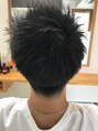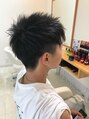 ツーブロックスタイルで耳周り、襟足を短く刈り上げてすっきりと。トップに長さを残すことで、上下にメリハリがつきシャープな印象に。