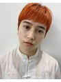 サイドとバックをスッキリしたショートカットに、街行く人が思わず振り向いてしまうような綺麗なオレンジカラーを合わせました。色が落ちてきても、柔らかいオレンジベージュカラーになるので長く楽しめます。担当 小林賢司