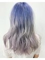かき氷のような根元がブルーヴァイオレットになったいわゆるルーツカラー色落ちも黄色味が出ないようにカラー配合を考えています。グラデーションカラーに飽きた方にオススメです!担当 小林賢司