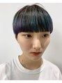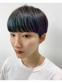 根元を暗く残して、毛先をブルーにした通称恐竜カラーマッシュショートとのバランスがとてもgood落ちてきてもミントグリーンになって、それもまた良しです店長 小林