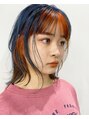 ネイビーとオレンジのミックスカラー2020年流行ったフェイスフレーミングをアレンジしたデザインですカットはレイヤーを軽く入れたボブ通り過ぎた後に思わず振り返りたくなるような素敵なデザイン担当 小林