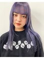 スモーキーなヴァイオレットカラー履歴が複雑でなければ1度のブリーチで仕上がります。顔まわりを切り込んだストレートウルフヘアともいいバランスです。担当 小林