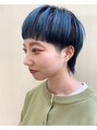 ラインを感じるマッシュウルフに地毛を生かしたブルーヘア