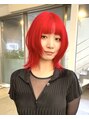 レイヤーウルフカットハイトーンネオンレッドカラー