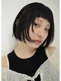 オン眉でレイヤーが入ったボブのスタイル。ストレートアイロンを通してオイルでスタイリングしました。
