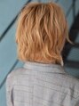 かき上げて流した長めのバングがセクシーでハンサムなミディアムスタイル。レイヤーを入れてウルフ風のデザインです。えりあしと全体的ににも外ハネにカールをつけてボーイッシュなスタイリングに[藤沢駅]