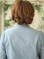 顔周りの毛束を少し残し、左右たし編みしながら耳後ろまで編みピンで固定します。トップに少し逆毛をたてふんわりさせたところでねじってピンで固定します。あとは編み込みながらgo!! [橋本駅]