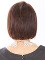 ミディアムラインで軽めの質感のボブに仕上げてカラーとのバランスでかなり透け感を強調しています。ノンレイヤーであくまで内側からの量感調整で雰囲気だしてます。飽きてきたら、前上がりや前下がりにしてみては。[橋本駅]