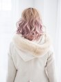赤みをしっかりと抑えたベージュハイトーンにピンクパープルのグラデーションで可愛く個性的に☆ミディアムボブベースのスタイルに26mmのコテでなみウェーブをつくって可愛さアップ☆前髮は目上でカットして目力アップ効果に☆[橋本駅]
