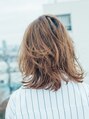 鎖骨ラインで扱いやすい長さのミディアムボブ。トップに段をつけて毛先に軽さをプラスしています。全体に毛先は無造作な動きがでるように隙間をあけながらカットしているので乾かすだけでも簡単にスタイリングができます![橋本駅]