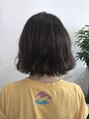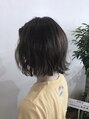 あまり明るい色が出来ないライフスタイルの方にオススメ。明るさは抑えめだけど、どこか透明感と優しい雰囲気を出すことが出来ます。ボブスタイルを外ハネベースに動かすとより空気をキャッチして力の入っていない大人感が出ます。【ALIUS 池袋 店長 小川】
