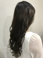 ナチュラルロングのスタイルに、毛先にかけてしっかりカーキグレージュをカラーリングしました。ぱっと見、落ち着いた印象に見えますが、光に当たると軽やかで赤み黄色みのない透明感のあるスタイルです。【ALIUS 池袋 店長 小川】