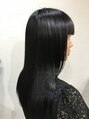 ナチュラルロングのスタイルに、しっかりブルー強めのブルーブラックをカラーリング。ぱっと見は黒、光に当たるとブルーに輝く透明感のあるスタイルです。【ALIUS 池袋 店長 小川】