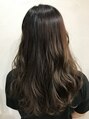ナチュラルロングのスタイルに、毛先にかけてしっかりカーキグレージュをカラーリングしました。ぱっと見、落ち着いた印象に見えますが、光に当たると軽やかで赤み黄色みのない透明感のあるスタイルです。【ALIUS 池袋 店長 小川】