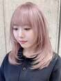 ハイトーンカラーミディアムレイヤーカットクリアピンクベージュ