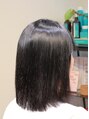 50代女性 細めの毛質でもクセが強い。ぺったりとして見えないように、根元を少し浮かせて縮毛矯正をしています。