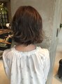 肩上でカットしたボブに、外にはねさせたり、表面を動かしやすくしたりと毛量調節しています。カラーは8レベルのパールベージュで透明感とツヤ感をだしています☆
