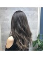 グラデーション風ハイライトオンカラー!グラデーションになるよう明度の差をつくるブリーチでハイライトを入れ、オンカラーでラベンダーベースのカラーをオン!程よい立体感、透明感で巻いた時もさらにカワイイ!
