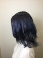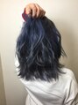 一度ブリーチした後に、ラベンダーとブルーをお入れしました♪ラベンダーを入れる事によって、お色が退職しても黄色味が残らないので、色落ちも楽しめますよ♪仕上げの際に波ウェーブかミックス巻きにしてあげると、より立体的になって可愛くなります^_^