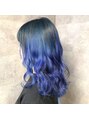 前頭ブリーチ後根元に暗めのブルーを被せて毛先はカラーミューズで薄めに作ったブルーを被せました!色の配合などこだわりがございます!是非ご相談ください♪stylist 岸雄一