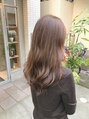 重めのレイヤスタイルです。全体に動きがでるように段を入れていますがカットのラインは重めに作っています。柔らかさが出るブラウンよりのアッシュでカラーはしています。