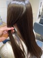 ダメージレベルに合わせた薬剤選定は、柔らかい質感の縮毛矯正をかけることができます。無理せずじっくり時間をかけた矯正をおすすめですが、履歴や矯正の頻度も詳しくお聞かせください。