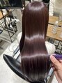 人気のイルミナカラー毛先はブリーチ+縮毛矯正!履歴もあり!赤みを出したバイオレッド系にしました。ベースの色によってても変わってくるで相談を!Feria渋谷Gishi
