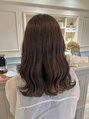 透明感溢れるグレージュカラー。赤み、オレンジを消す為に濃くブルー系やオリーブ系のお色味を入れています。ベタっと暗くなりすぎないようにグレー系もプラスする事で柔らかい仕上がりに。