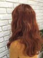 ハイトーンの抜けた髪にメロウ感のあるレッドカラーをオン♪ルーズウェーブでカジュアルに見せて。パウダースプレーで質感はドライにしてます。いつもとは違う自分に変えてみてはいかがでしょう。【所沢】