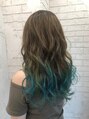 シアーカラー姫カットカールターコイズブルーグラデーション所沢